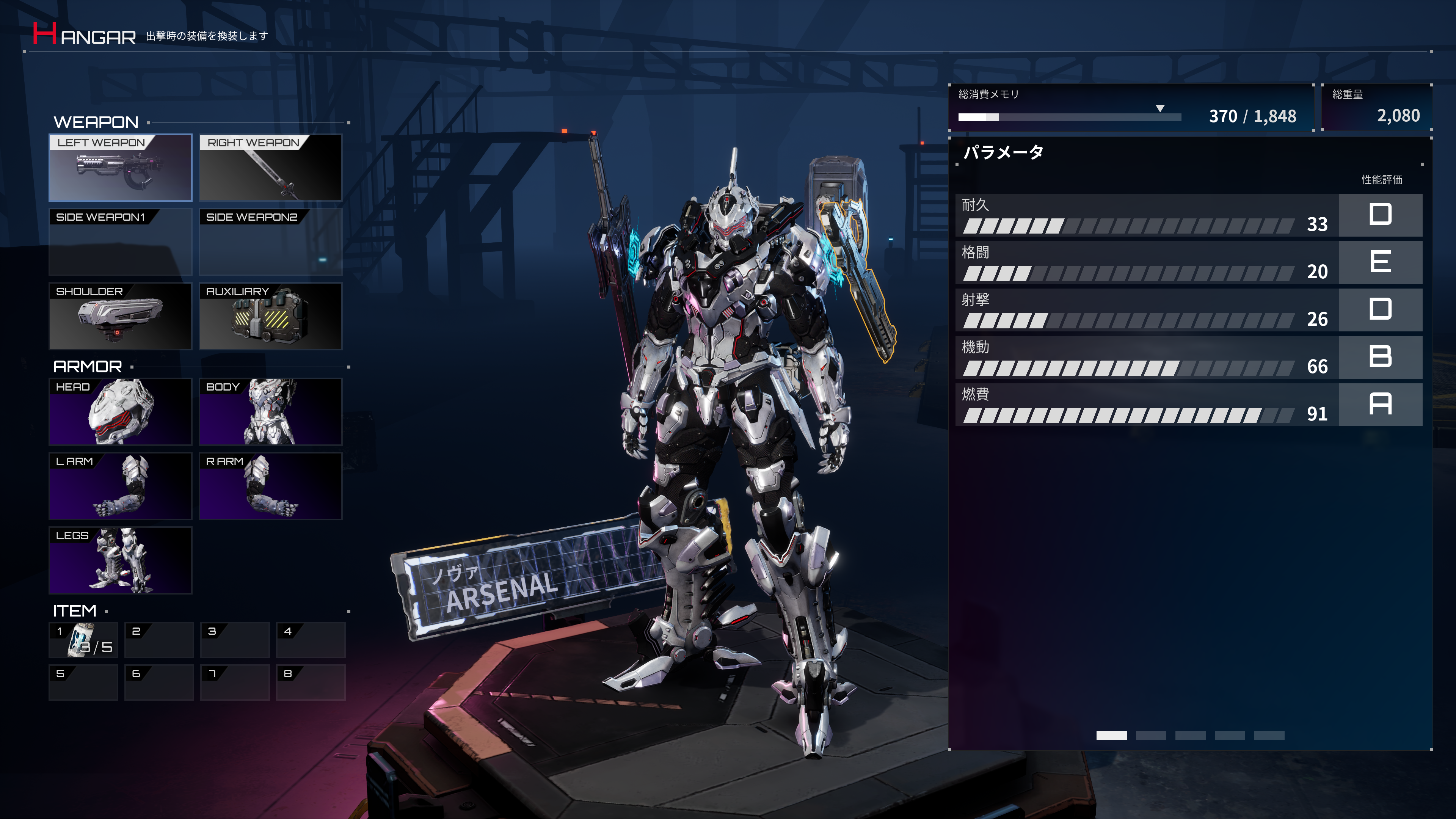 多様な装備を組み替えて作るアーセナルを身に纏い銃声と咆哮が響き渡る戦場に身を投じるメカアクションゲームです。