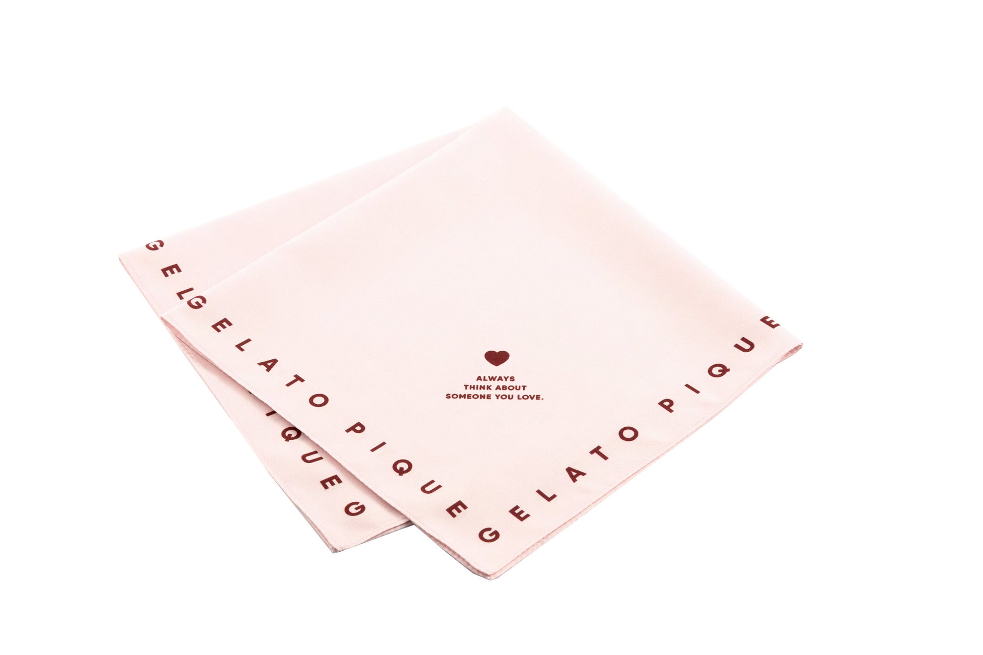 今年のランチョンマットはケーキと合わせたピンクカラーで、縁にはブランドロゴをデザインしています。