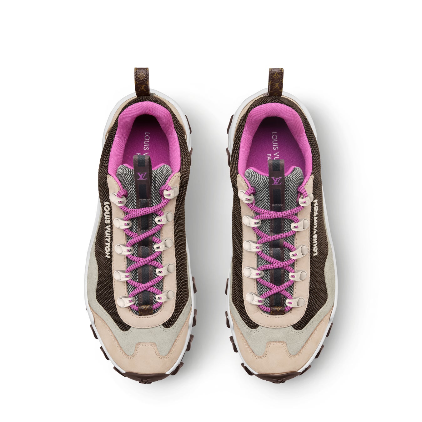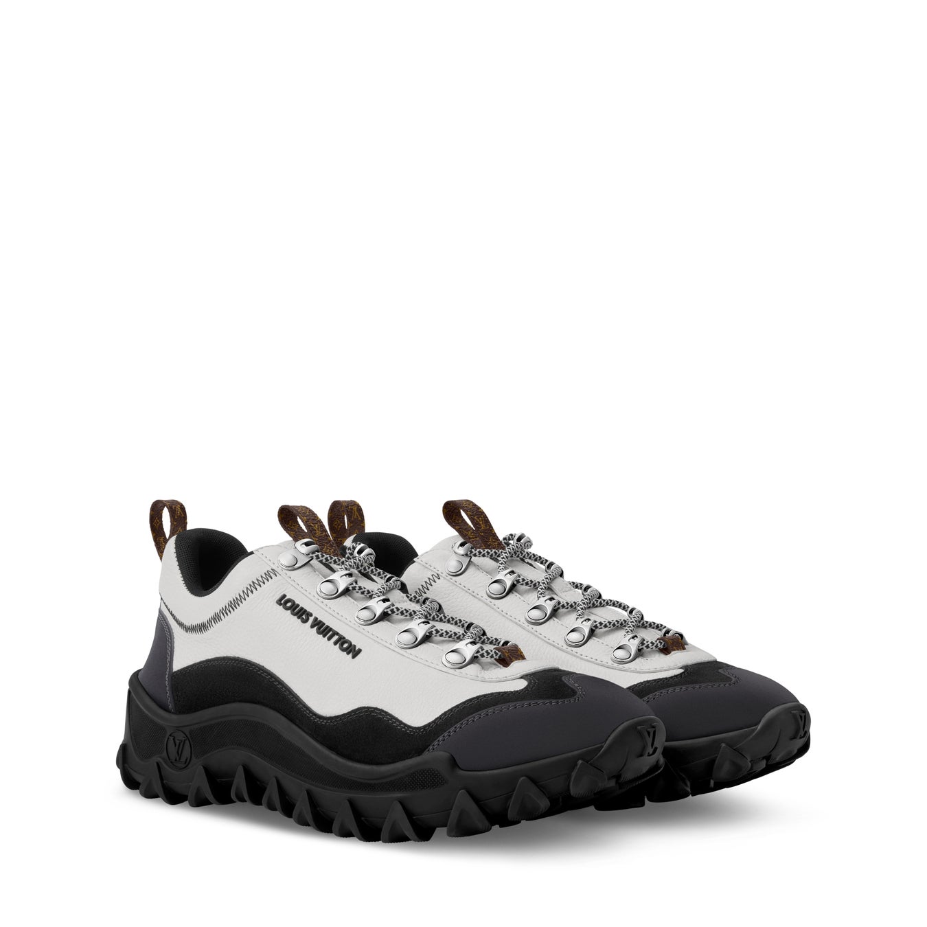 特徴的な波形のフォルムにジグザグ状のデザインを施したチャンキーなラバーアウトソールやテクニカルシューレースにより、独創的でスポーティなスタイルを演出。サイドにはラバーの「Louis Vuitton」シグネチャーを、背面にはモノグラム·キャンバスのループをあしらいました。