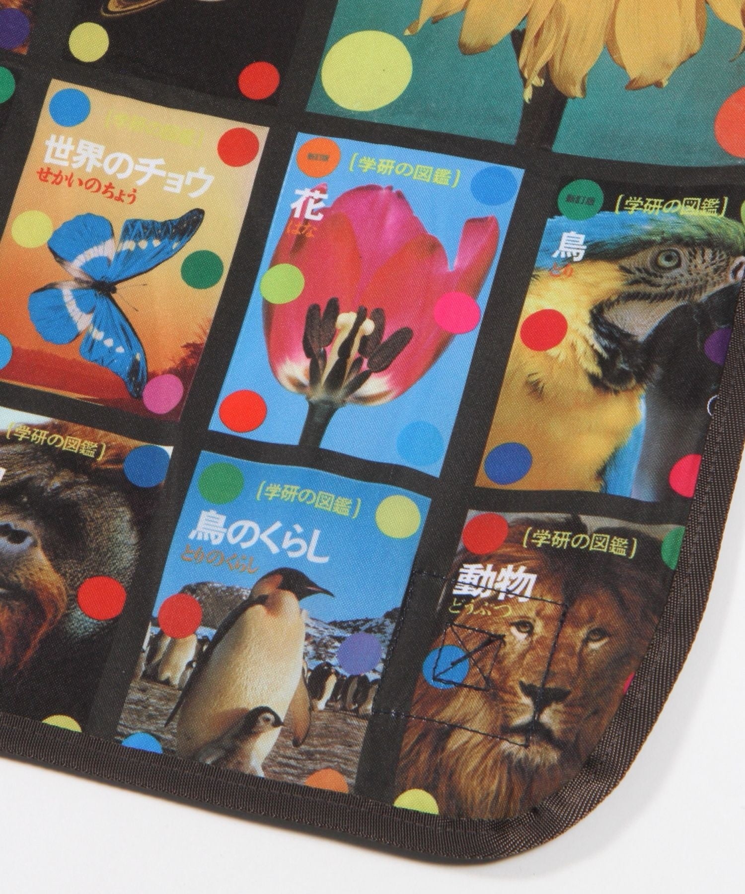 グラフィックには、水玉が印象的な1970年代から80年代に創刊された「学研の図鑑」の表紙をアレンジしたものを使用しており、「クーラーバッグ」や「レジャーシート」などレジャーシーンで活躍するアイテムから、インパクト大の「ブック型クッション」、本棚で図鑑と並べて使いたい「ブック型ボックス」など、まるで図鑑のようなアイテムも見どころです。