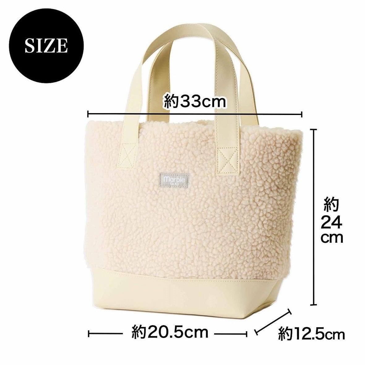 ぬくもりあるボアバッグ。裏地にはちょうちょ柄をプリント。丸ポーチにも同柄を刻印♪