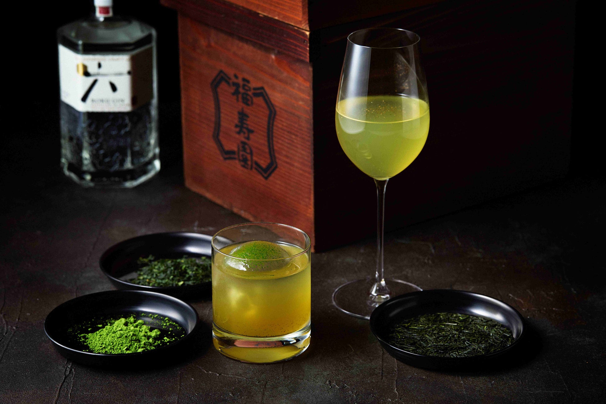 今回のコラボレーションでは、日本の伝統的な茶文化とクラフトジンが融合し、繊細かつ芳醇な味わいが楽しめる特別な一杯をご用意しました。それぞれのカクテルには厳選された福寿園のお茶を使用し、季節の訪れを感じる爽やかな仕上がりとなっております。