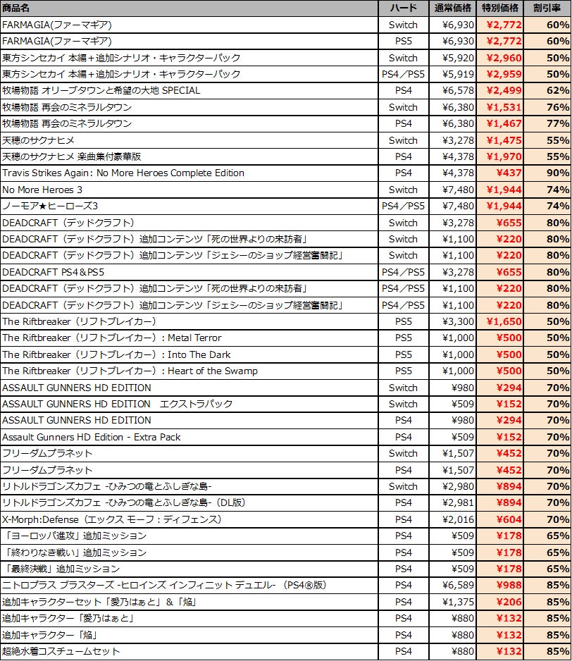 期間中、Nintendo Switch™/PlayStation®5/PlayStation®4向けの、『牧場物語』シリーズ、『天穂のサクナヒメ』など、全14タイトルおよび有料DLCが最大90%OFF!