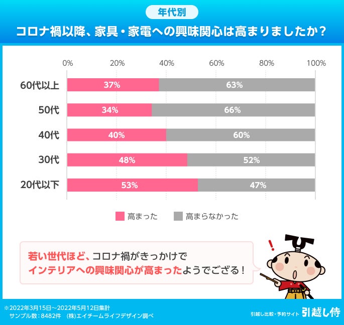 1. コロナ禍でインテリアへの興味がより高まったのは、「若年層」