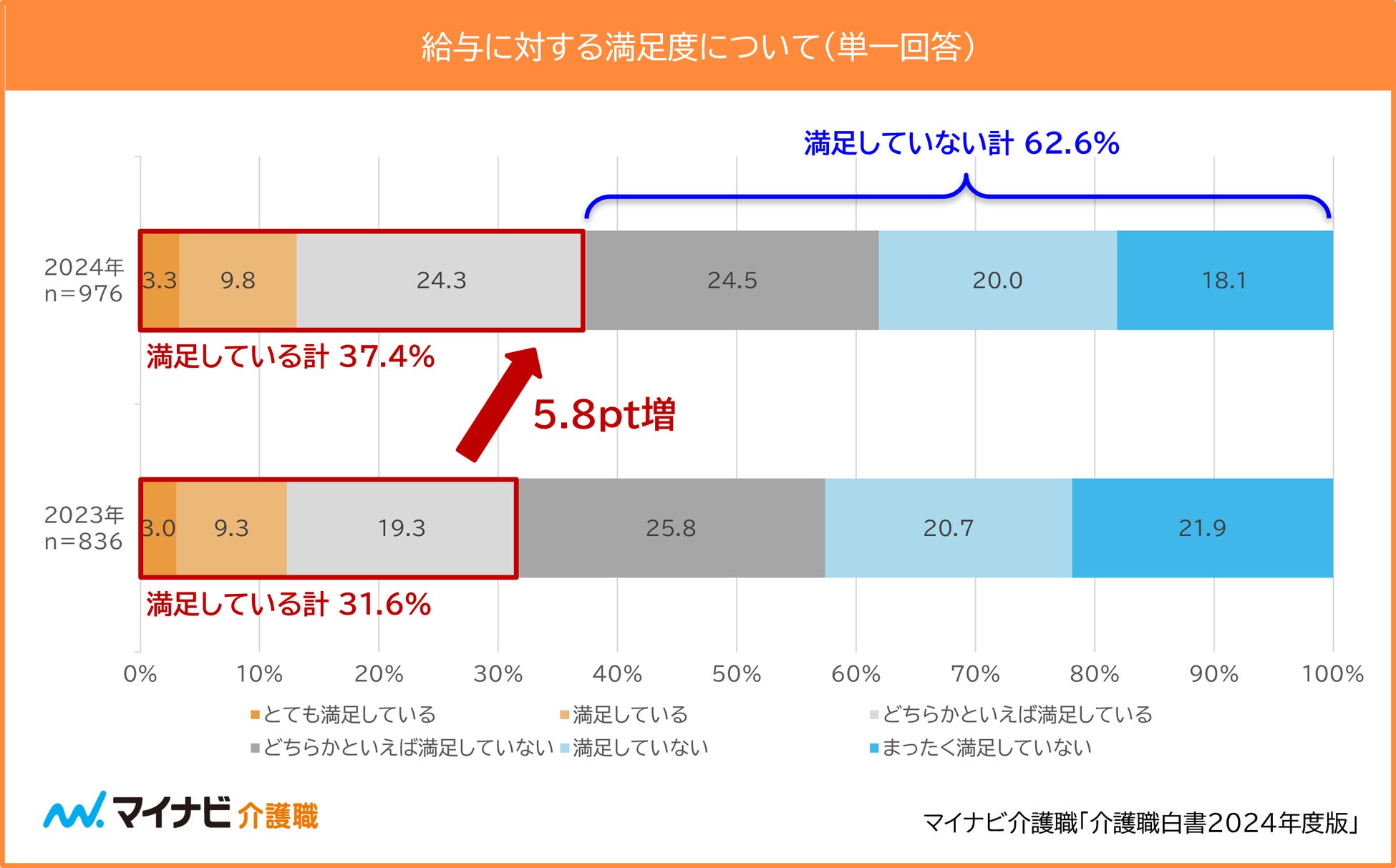 株式会社マイナビ(本社:東京都千代田区、代表取締役 社長執行役員:土屋芳明)が運営する介護職向け人材紹介サービス『マイナビ介護職』(https://kaigoshoku.mynavi.jp/)は、登録会員(介護職976名)を対象とした、「介護職白書2024年度版」の結果を発表しました。本調査を通して、介護職の勤務環境と課題などが明らかになりました。