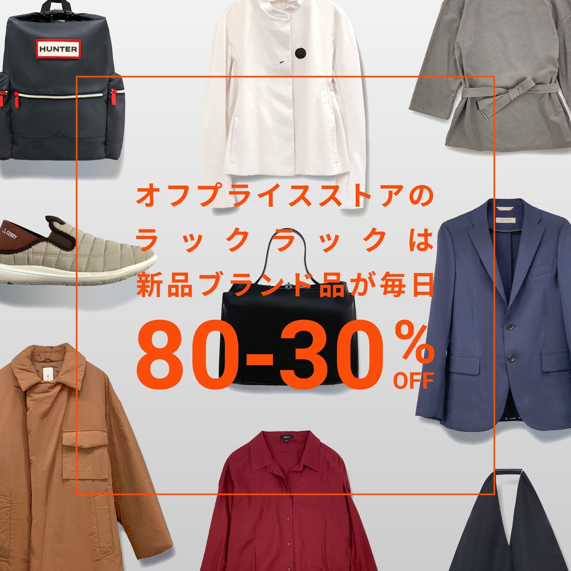 ラックラックは様々な理由で販売時期を過ぎてしまった商品を買取り、捨ててしまうにはもったいない新品の商品を80-30%OFFで販売するオフプライスストアです。価値あるモノとの驚きの出会いを、是非、お楽しみください。