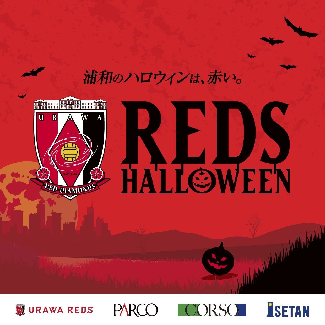 浦和レッズ × 浦和PARCO × 浦和コルソ × 伊勢丹浦和店、浦和の名を持つ4社が、浦和のハロウィンを赤く染め上げる!埼玉県さいたま市を本拠とするJリーグのサッカークラブの“浦和レッドダイヤモンズ”(以下、浦和レッズ)と浦和の3つの商業施設“浦和PARCO”“コミュニティプラザ・コルソ”“伊勢丹浦和店“は、「REDS HALLOWEEN(レッズハロウィン)」と題し、昨年に引き続き、4社合同キャンペーンを実施いたします。