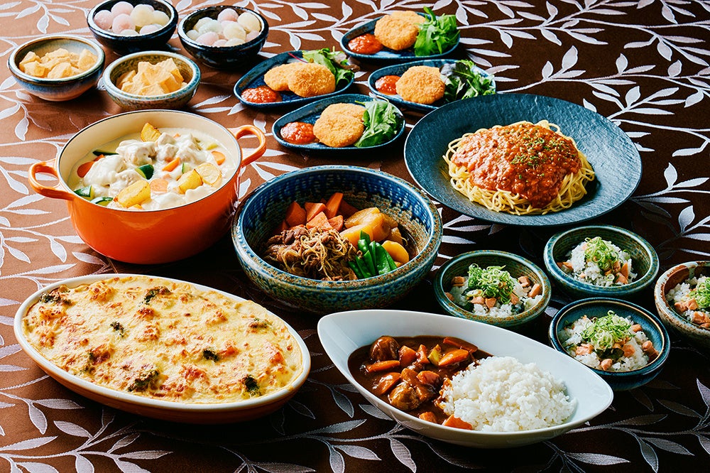 ミートソーススパゲティに蟹クリームコロッケ、チキンのクリームシチューに肉じゃが、カレーライスなど、時代を超えて愛される洋食の王道メニューから家庭の定番までをラインアップする「昭和100年フェアブッフェ」を開催。土・日・祝日限定で、懐かしの遊びをお子様に体験していただけるイベントもご用意しております。