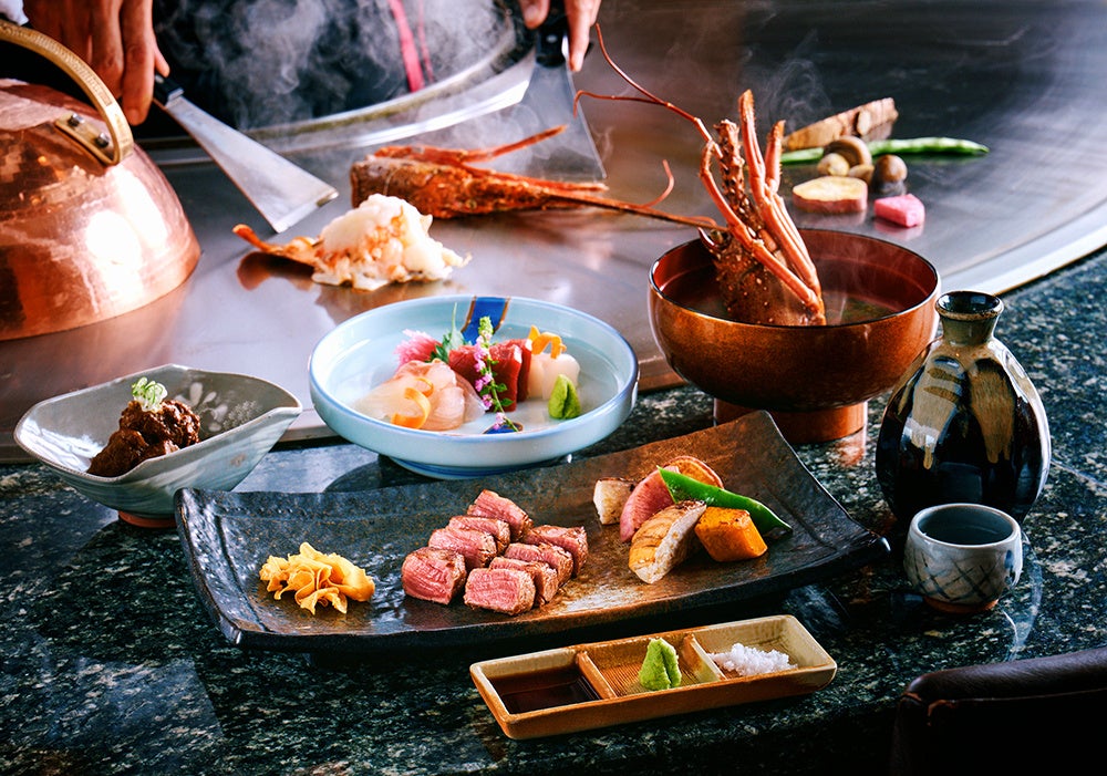「昭和懐古 ~ノスタルジア~」は、山椒香る「牛肉の味噌煮込み」、「伊勢海老のかぶら蒸し かつお香る和風餡仕立て」など和を取り入れたコースです。伊勢海老の頭は鉄板焼またはお味噌汁、お好みでお召し上がりいただけます。その他、オプションメニューとして、青森県産にんにくと丹後の醤油をじっくり馴染ませた秘伝のたれで仕上げる「鉄板焼 ときわ」伝統のガーリックライスもご用意しています。