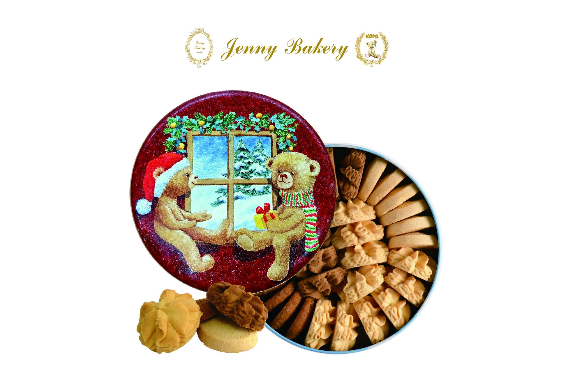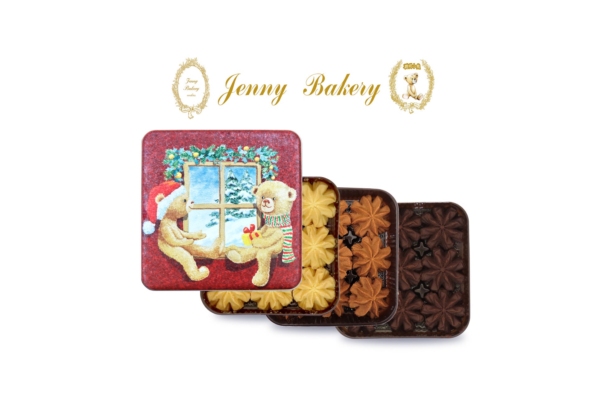 ①ジェニーベーカリーの看板商品。缶の中には、バターフラワー、コーヒーフラワー、ショートブレットレーズン・オーツの4種類がぎっしり詰まっています。