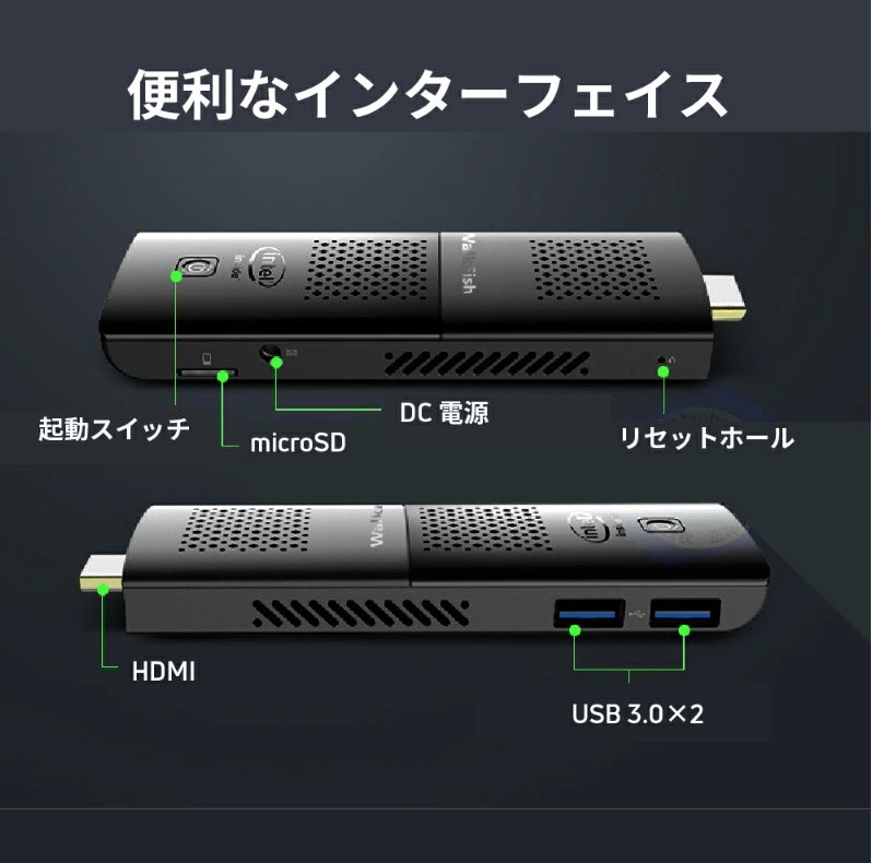スティック型で持ち運び楽々な本体には、高性能なCPUを搭載。