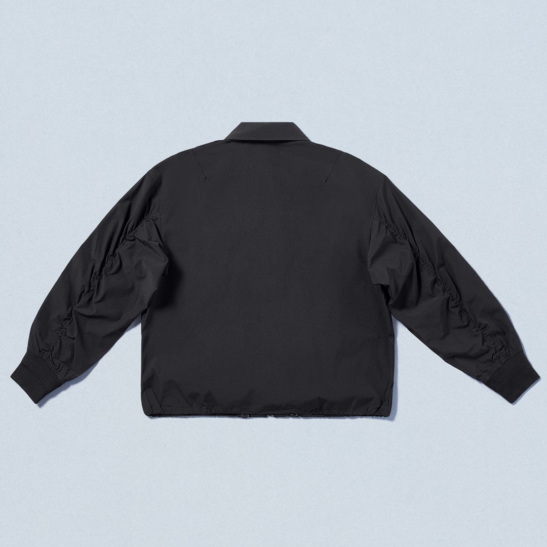 【内容】ジップアップジャケットは昨年ご好評いただいた黒に加えて新色のベージュが登場します。撥水、UVカット、ストレッチが効いた高機能素材を使用しており、着心地が抜群です。ベーシックな型なので男女問わず幅広いお客さま、シーンに対応可能です。袖にギャザーをいれてファッション性をプラスしました。同素材のジョガーパンツと合わせて、セットアップでの着用がおすすめです。数量限定です。