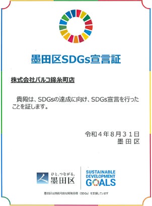 【錦糸町パルコは、「墨田区SDGs宣言」に賛同し、宣言に加わりました】