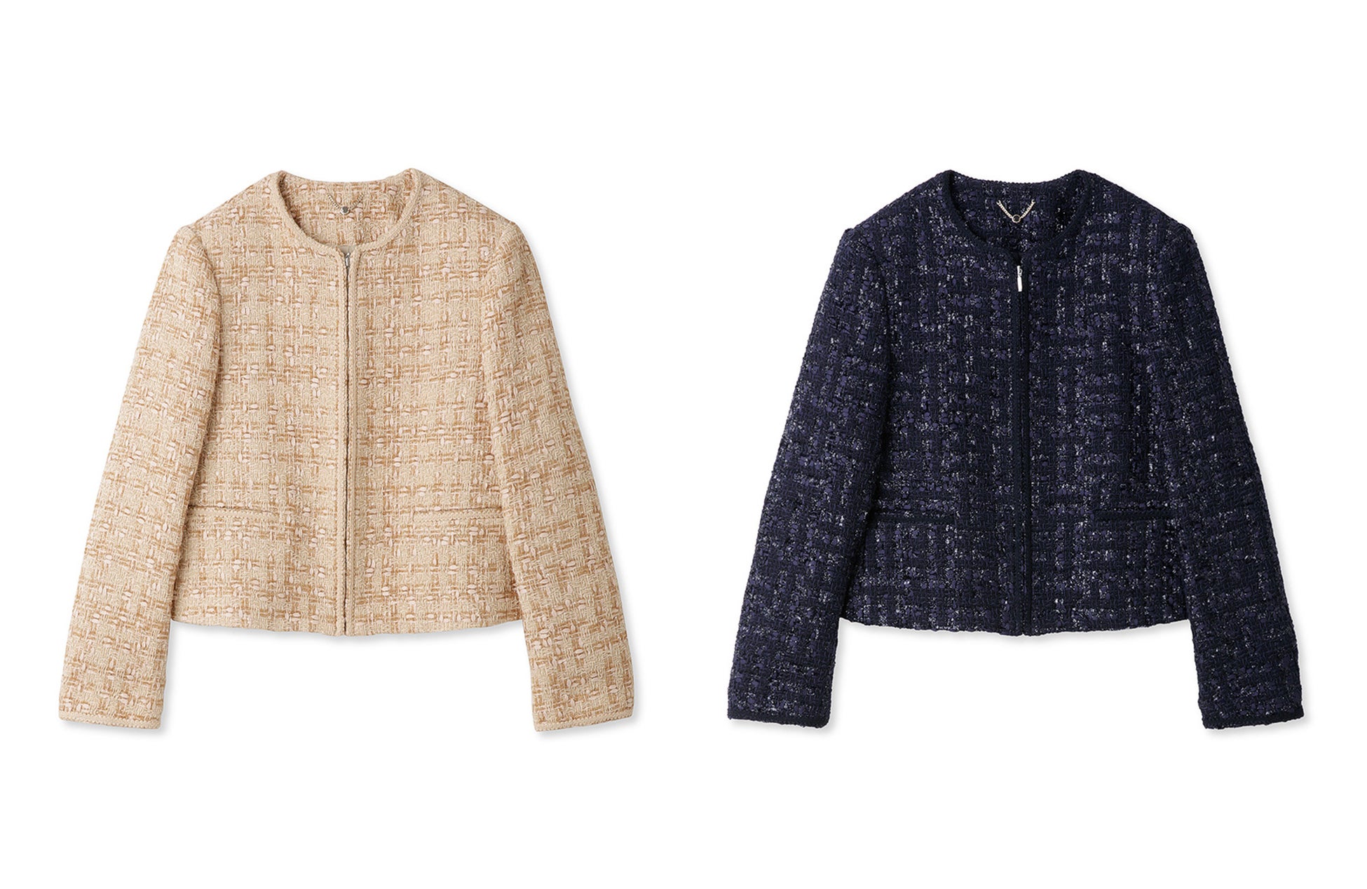 モードなスタイルから女性らしい装いなど、あらゆるシーンで気品さを与えてくれるツイードジャケットです。