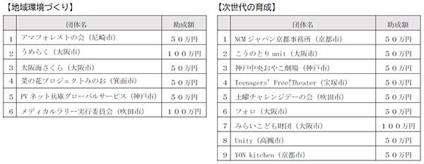 「地域環境づくり」と「次世代の育成」に取り組む合計15団体に総額900万円を助成