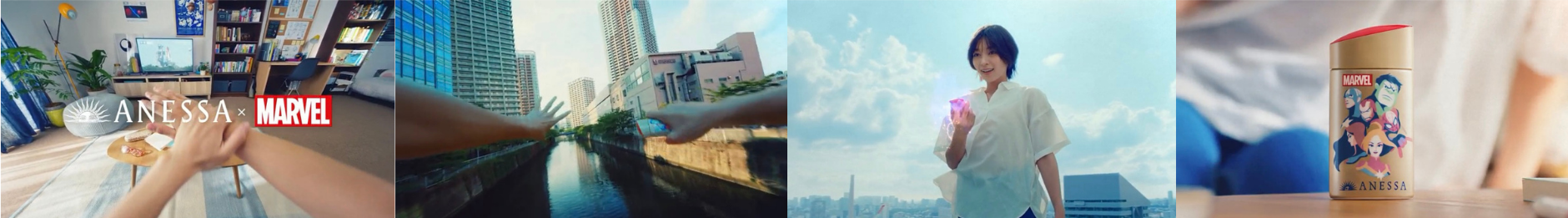 コンセプトムービーでは、アネッサを塗布した主人公が、内に秘めたパワーを解放し、まるでMARVELのヒーローのように街中を飛び回って躍動する姿を描いています。主人公が飛び回る世界は、東京の街並を描いており、普段の日常生活においても、アネッサがあれば太陽のもとで輝き続けることができる、というメッセージを込めています。