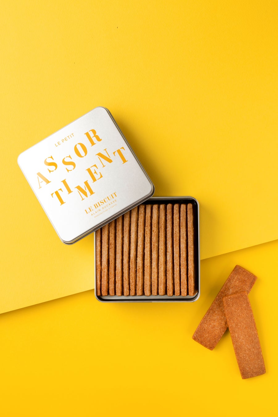 「ピュール・ブール」は、アラン・デュカスの思い出「おばあちゃんが作ってくれたビスケット」を再現したバター風味のビスケット。サクサクとした軽やかな食感と香ばしいバターの香り、さらに優しくとけていくような食感を堪能できる、贅沢な逸品です。