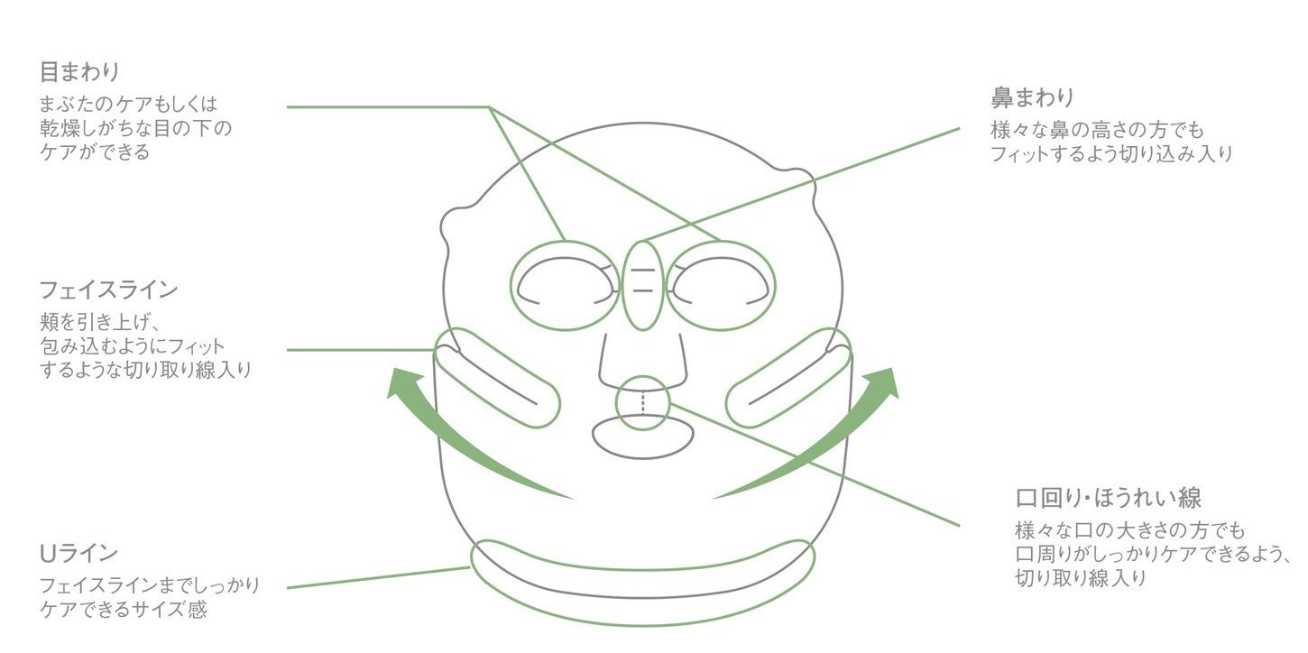 肌のすみずみまで美容液で満たせるよう、シートマスクの形状にもこだわった高密着シート。