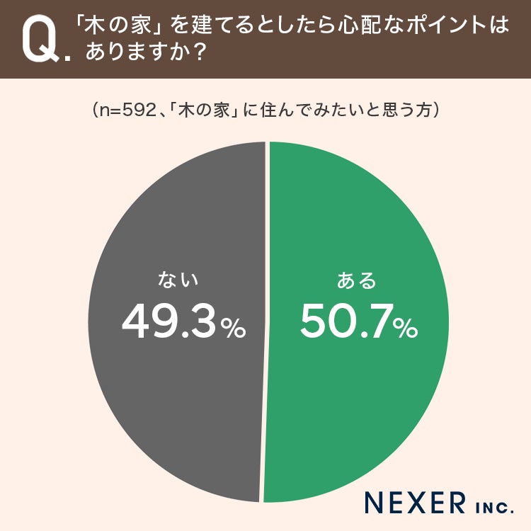 ■50.7%が「木の家」を建てるとしたら心配なポイントが「ある」と回答