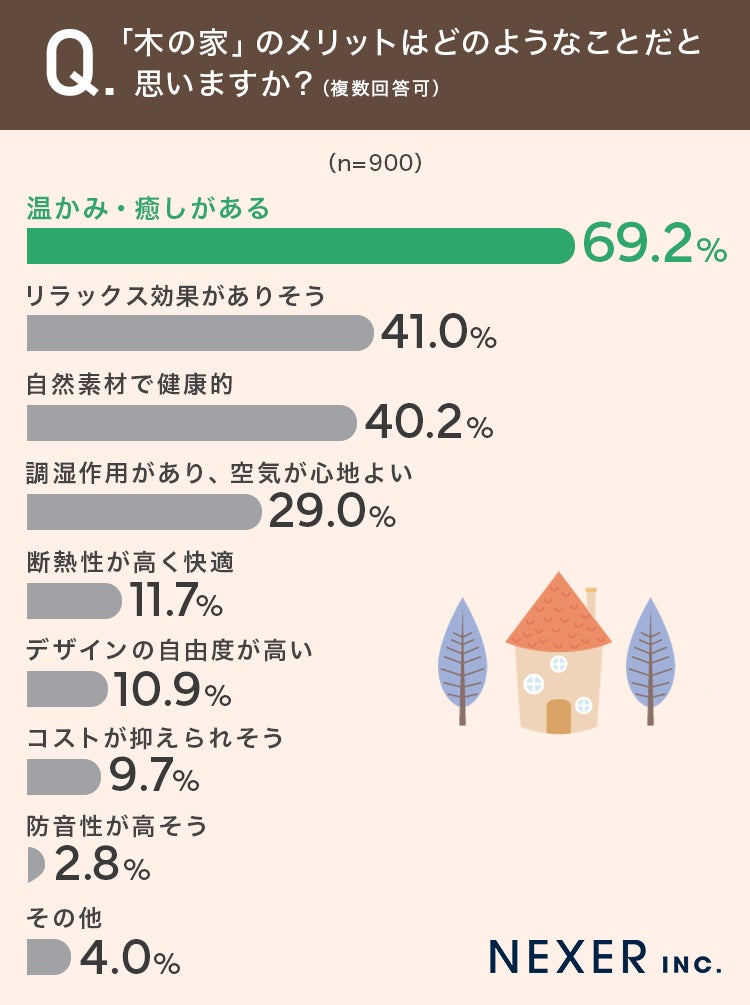 ■69.2%が「木の家」のメリットとして「温かみ・癒しがある」と回答