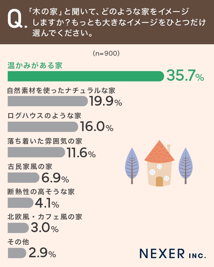 ■35.7%が「木の家」のイメージとして「温かみがある家」と回答