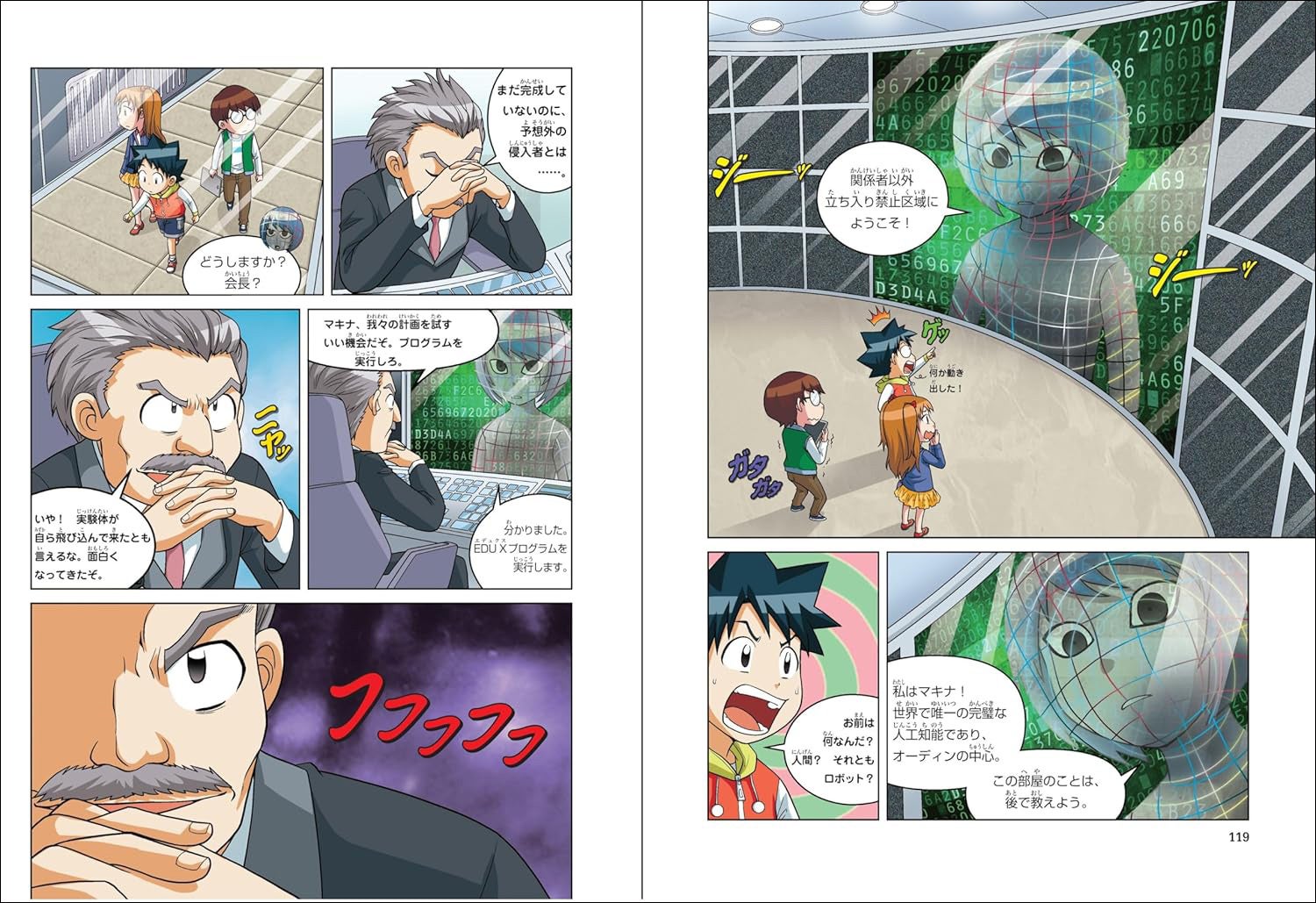 「AIテーマパーク」に招待されたジオ。テーマパークには、人工知能を利用したアトラクションがいっぱい。夢中になって見学していたジオたちだったが、きらめく光に導かれて入り込んだ謎めいた部屋に閉じ込められてしまった! その部屋でジオたちを待っていたのは、人工知能ロボットのマキナ。ここから抜け出すには、マキナとのクイズ対決で勝つことしかないというのだが……。NHK Eテレで放送中のテレビアニメ「科学×冒険サバイバル!」第1シリーズの原作。最新刊『AIロボット世界のサバイバル』のプロローグ的作品。