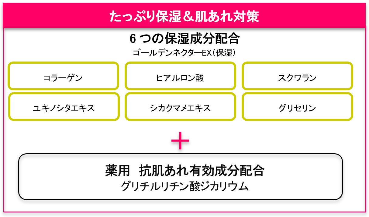 ○うるおい注入処方:年齢とともに硬くなった角層深くまで、スーッと溶け込むように浸透し、うるおいで満たします。