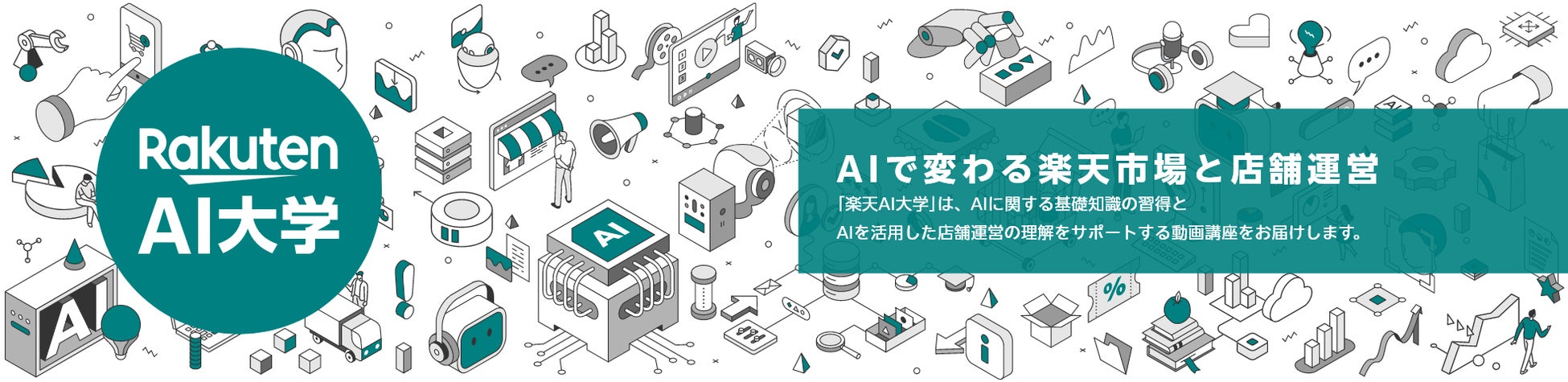 それに加えて本日提供を開始した「楽天AI大学」では、AI技術に関する理解促進と店舗運営におけるAI ツールの活用推進を目的として、AIの基礎知識に加えて、「RMS AIアシスタント β版」で提供する各機能の利用方法や出店店舗の活用事例などを学ぶことができます。将来的には、ビジネスパーソン向けの学びの場として開設したウェブメディア「楽天大学ラボ」(注4)においても、業界の有識者の知見を交えたAIに関する知識や教養を身に付けるための動画コンテンツを一般ユーザー向けに配信するなど、今後も順次コンテンツを拡充します。