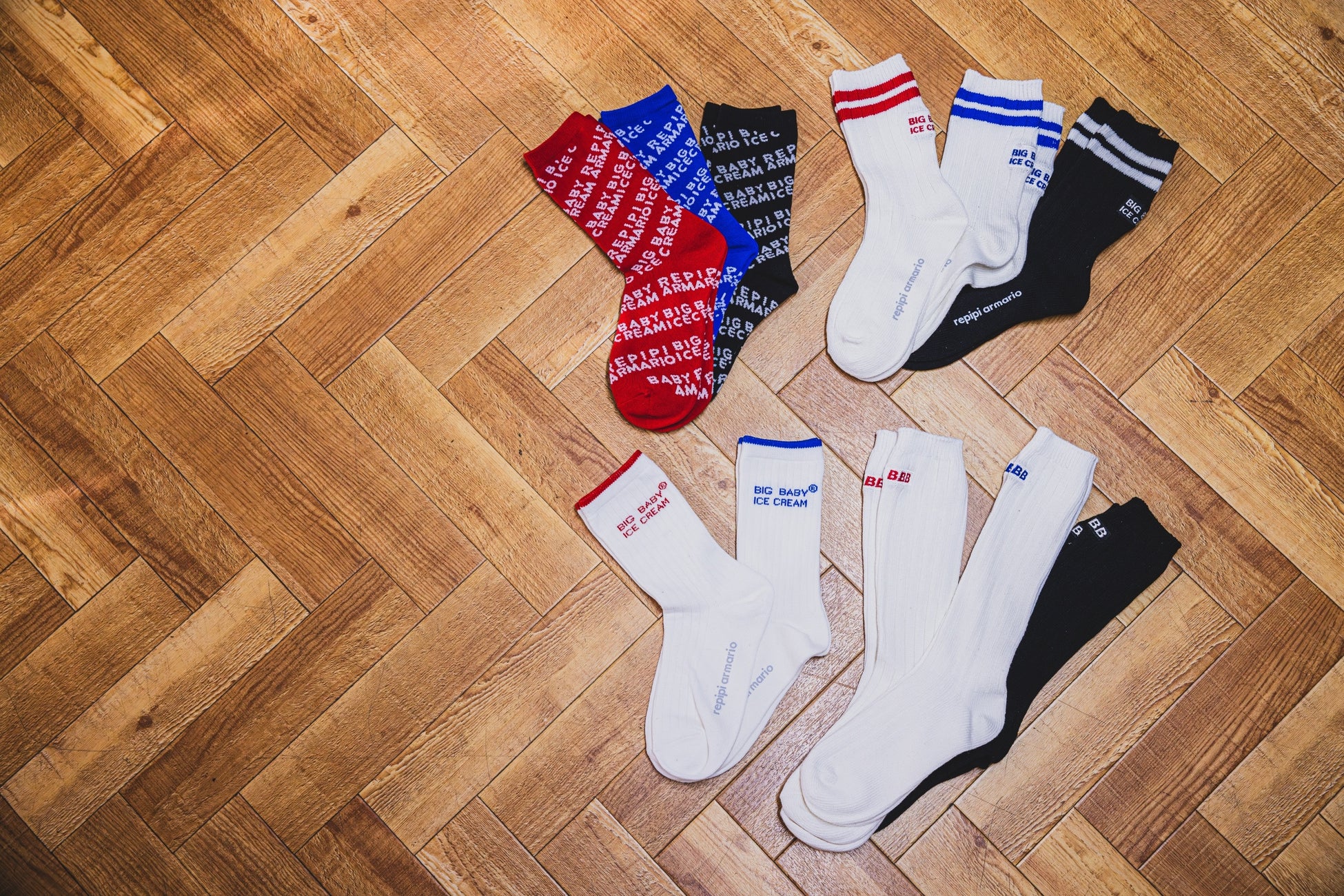 今回のコラボレーションでは、ビッグベイビーアイスクリームのメニューから、アイスクリームの人気フレーバーや、ブラウニーアイス、バースデーアイスケーキなどをアパレル、ファッショングッズにデザインしました。カラースプレーのデザインとPOPな総ロゴのアイスリングは、夏に大活躍すること間違いなし。アイスクリームの刺繍が目を引くホックデニムパンツは夏でも涼しく履ける接触冷感素材に。また、ビッグベイビーアイスクリームでも販売している人気アイテム“B”の刺繍が入ったキャップは、“R”の刺繍でレピピアルマリオ仕様にするなど、遊び心を詰め込み、夏のファッションがより楽しくなるラインアップに仕上がりました。