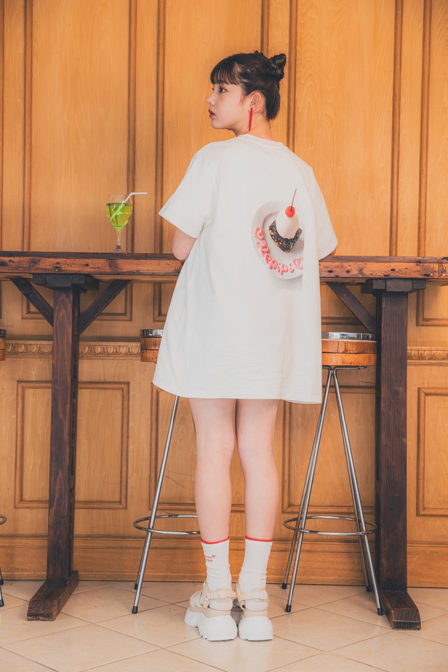 フロントに人気メニューのプリントをふんだんに詰め込んだTシャツ。色鮮やかな転写プリントがパッと目を引きます。デニムはもちろん、幅広いボトムスとの相性のよい魅力的なアイテム。