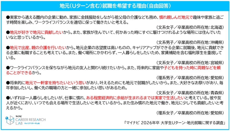 株式会社マイナビ(本社:東京都千代田区、代表取締役 社長執行役員:土屋芳明)は、2026年卒業予定の全国の大学生、大学院生を対象に実施した、「マイナビ 2026年卒 大学生Uターン・地元就職に関する調査」の結果を発表しました。