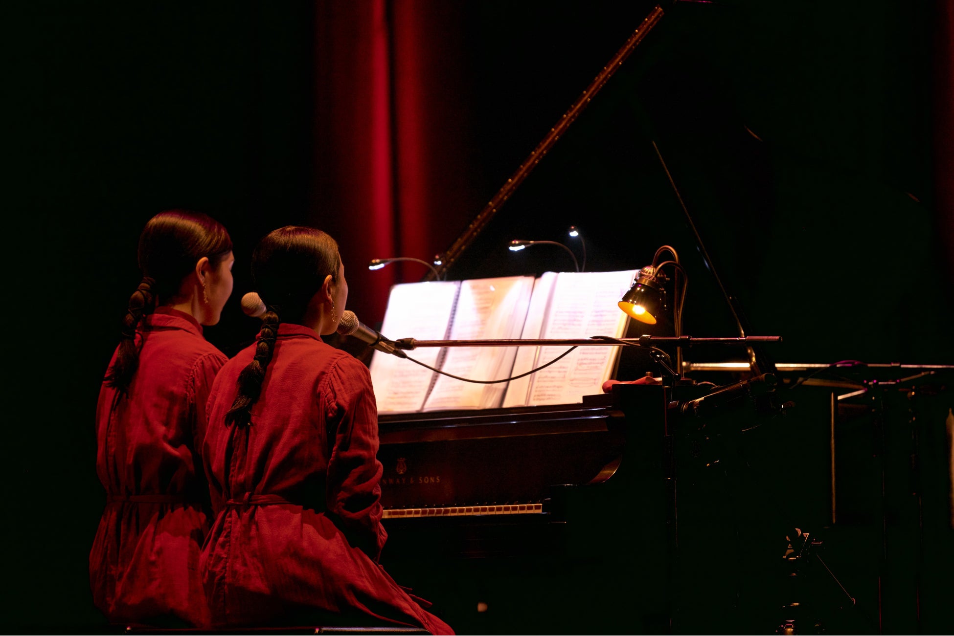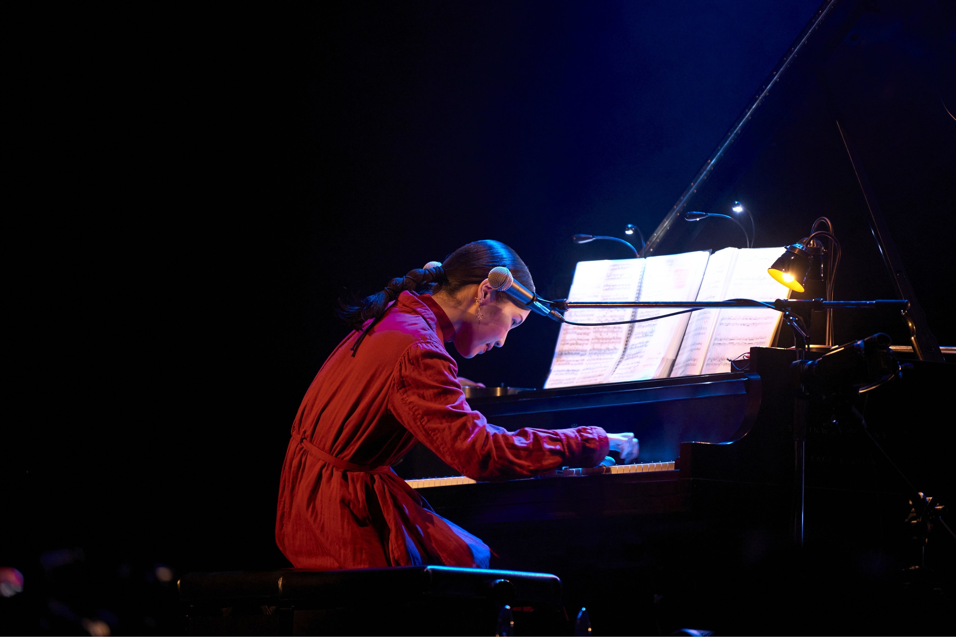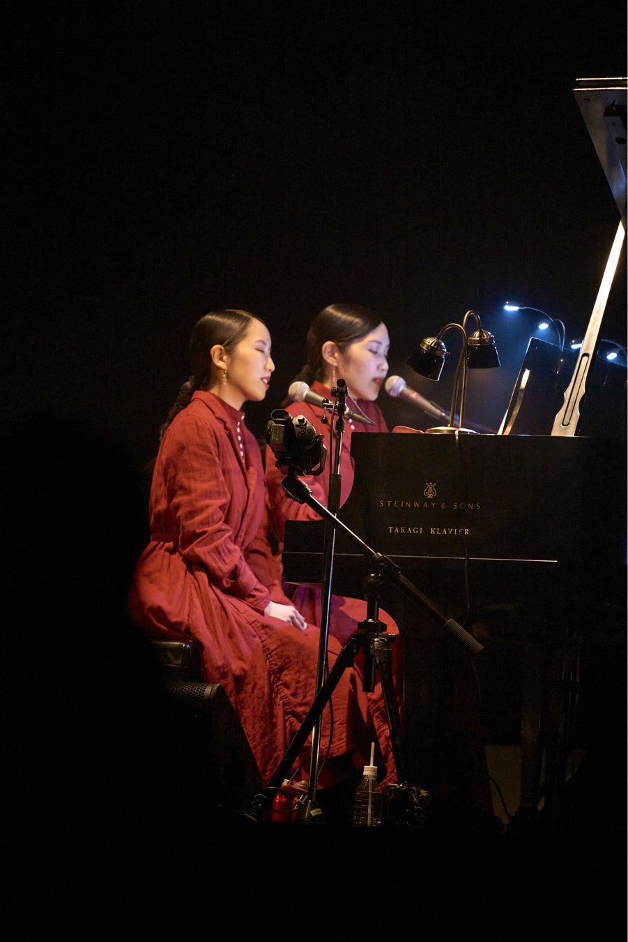 開演時刻、ゆっくり照明が暗くなると、Mona、Hinaの2人がステージに登場。クラシック曲「マ・メール・ロワ No.3」からライブがスタートした。続く「シンパシー」では、ささやくように静かに、それでいて確かな熱量を伝えていくMonaの歌声に、Hinaが温かいコーラスを重ねる。「NEW ME」も連弾スタイルで披露されたが、音源ではサックスやギターも自由に交えたダンスミュージック的な印象が強かったのに対し、こうして2人だけのピアノ演奏で聴くと、技巧的な鍵盤運びや、歌詞に込められた〈好きなようにそのまま生きていけ〉という意志が、一層強く浮き彫りになる。