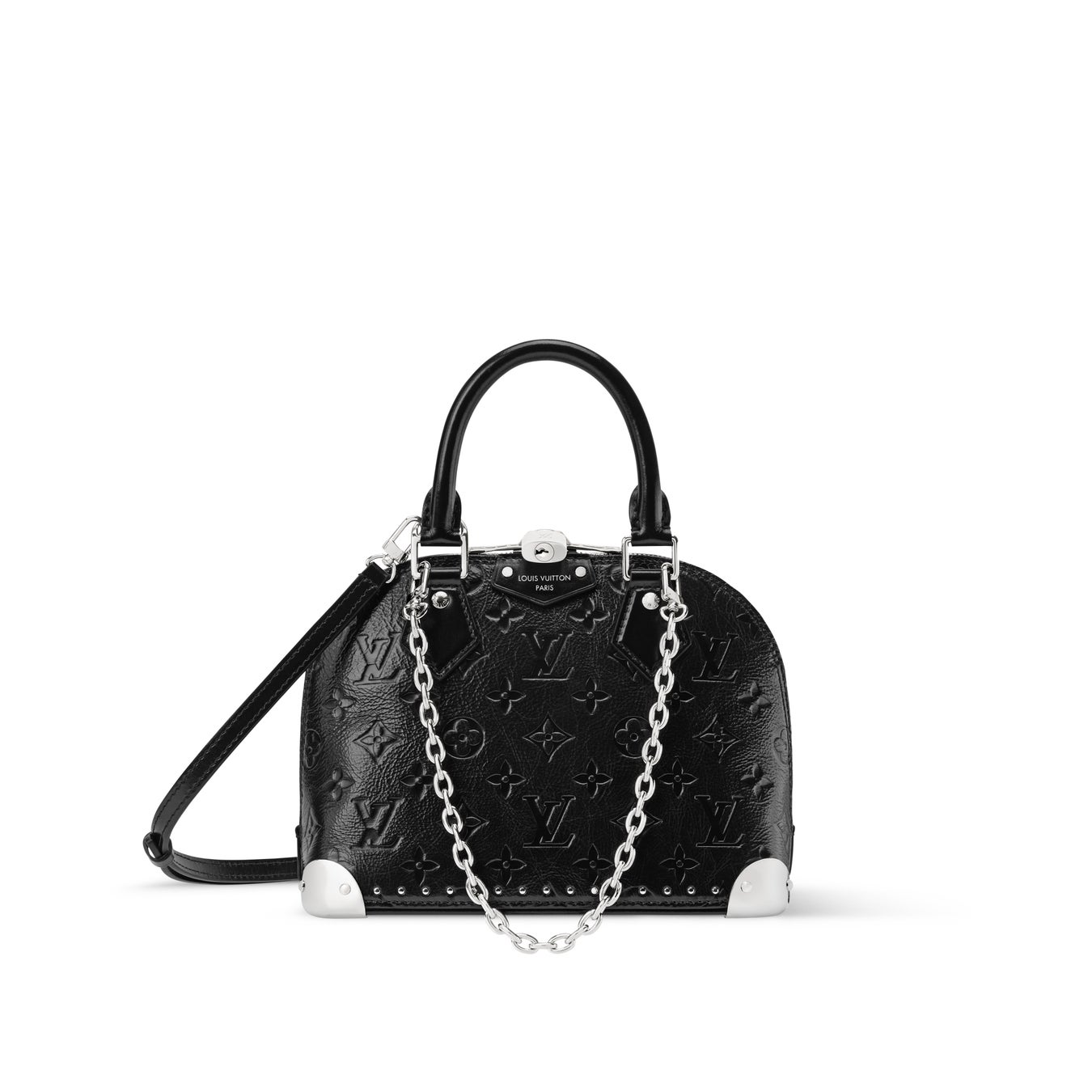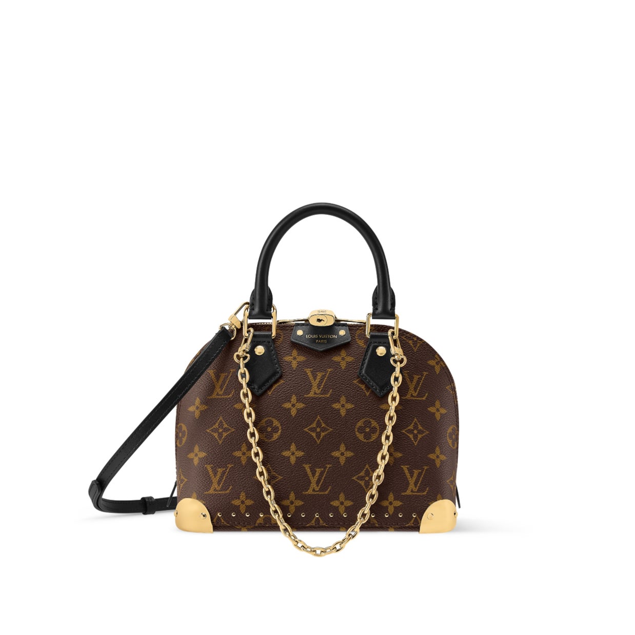 アイコニックなシグネチャーが特徴的な、メゾンの旅の伝統にオマージュを捧げる「トランク」ファミリーから登場した、「アルマ·トランク BB」。モノグラム·キャンバスを使用し、ブラックレザーのトリミングやゴールドカラーのメタルコーナー、スタッズを配してエレガントな印象に仕上げました。ゴールドカラーのチェーンはアクセントとして付けても外しても、さまざまな装いを楽しめるデザインです。