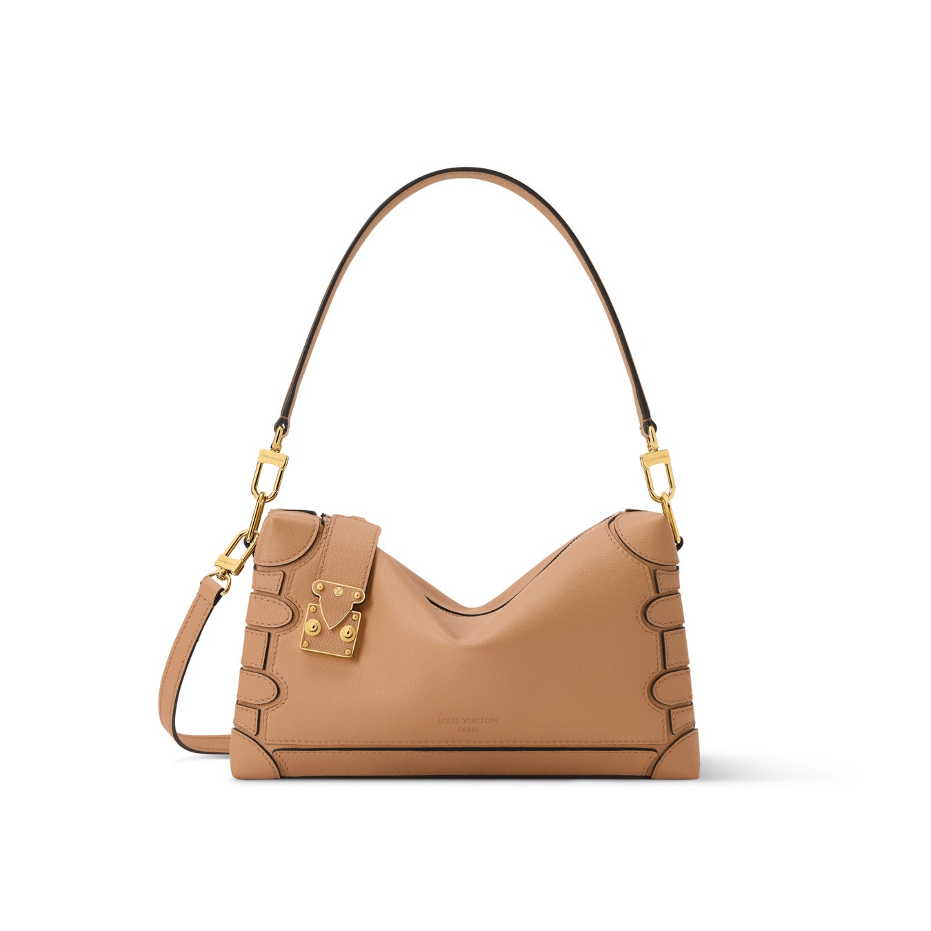 メゾンのトランク製造のヘリテージから着想を得た、「サイドトランク シルエット」。伝統的なメタルコーナーにレザーをあしらい、トロンプ·ルイユ(騙し絵)風に表現しました。ステッチを施してコントラストを効かせたカーフレザーが立体感を生み出し、ゴールドカラーの金具がアクセントをプラス。レザーで精巧に覆ったSロックスタイルの留め具は、アイコニックなディテールでモダンなイメージを添えています。毎日の必需品を収納できるサイズで、肩掛けでも手持ちでも楽しめます。