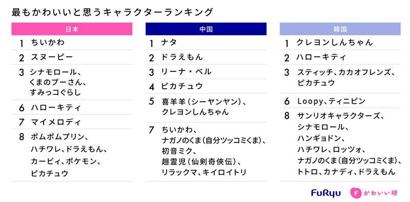 ■日本・中国・韓国の「“かわいい”と思うキャラクターランキング」調査