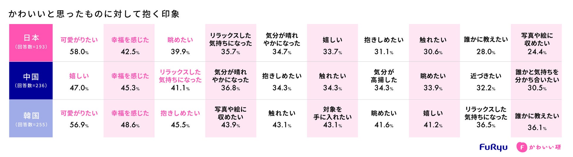 フリュー調査レポート:かわいい国際調査!日本・中国・韓国の“かわいい”の捉え方を調査/かわいいに対して、日本は消極的、中国は「気分を上げたい」、韓国は「所有したい」という傾向か