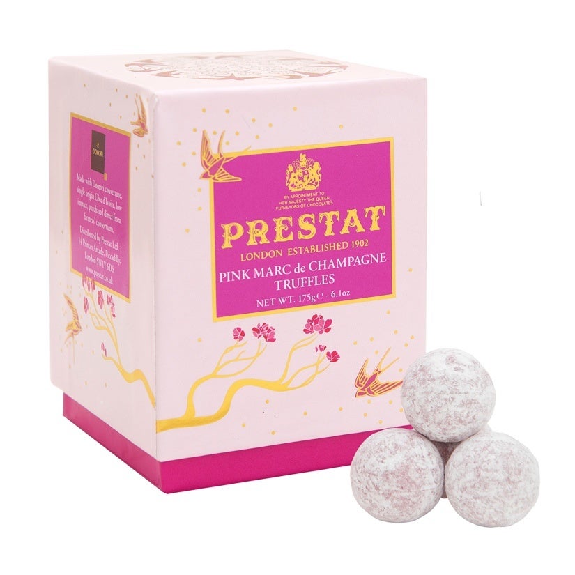 飯岡さんが提案するのは百貨店では日本橋三越本店のみ取り扱いがある〈プレスタ〉の「ピンクシャンパントリュフ」です。マール・ド・シャンパーニュの芳醇な香りが魅力的でシャンパーニュはもちろん、コーヒーや紅茶にもピッタリ。エレガントで豊かなひとときを楽しんでいただけます。特別なゲストへのプレゼントにおすすめです。