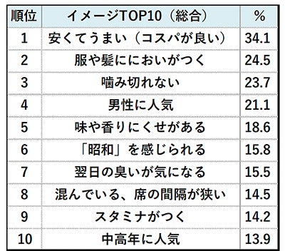 ■においや独特な食感のイメージをおさえ「安くてうまい」が1位