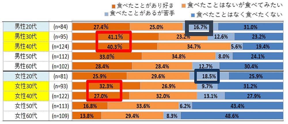 ※「食べたことがない人もイメージでお答えください」と注釈を付けて聴取