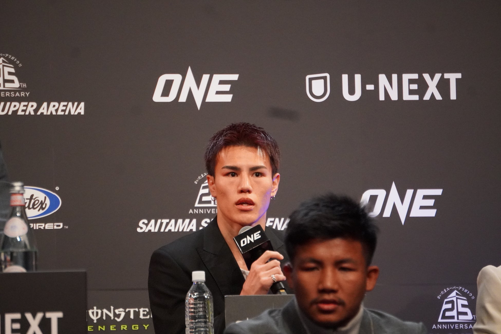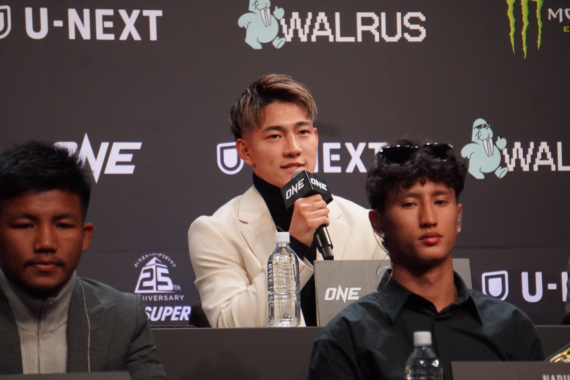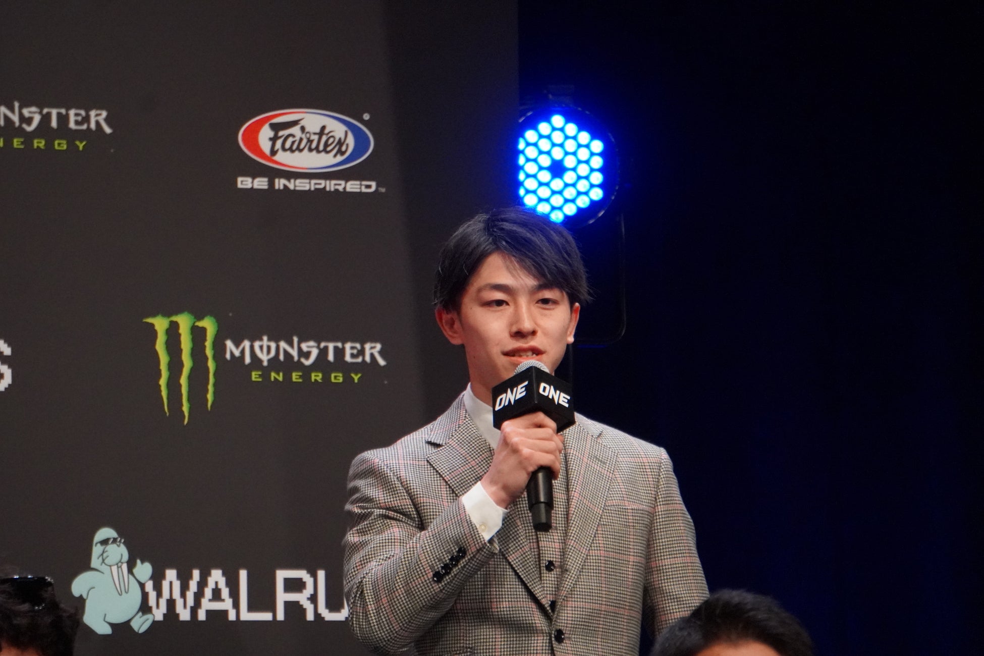 ONEの日本大会という最高の舞台で、過去最強の相手との対戦が決まって、本当にうれしく思います。日本大会ということもあって、ここにいる日本人選手みんな勝たないといけないと思いますし、僕は武尊選手とふたりで必ず勝たないといけないと思ってるんで、武尊くんの前に僕が勝って、いい流れを作ってバトンを渡したいと思います。ぜひ期待してください。