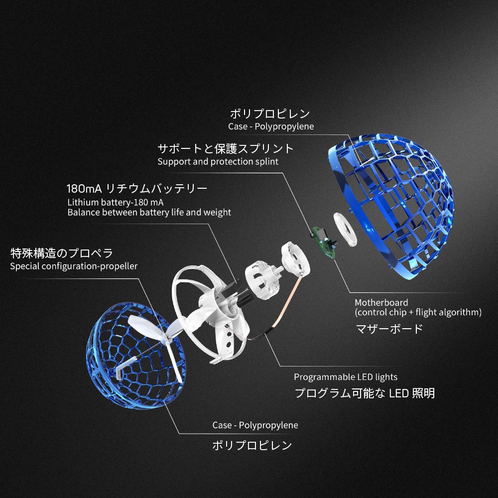 小さな星のような球形に内蔵された強力なモーターによって、