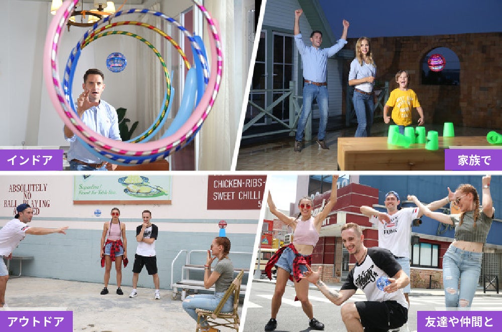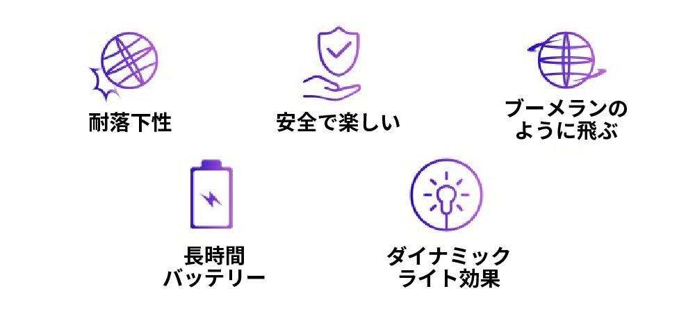 ブーメランやヨーヨーのように飛び、個人や複数で様々な飛び方を楽しめる