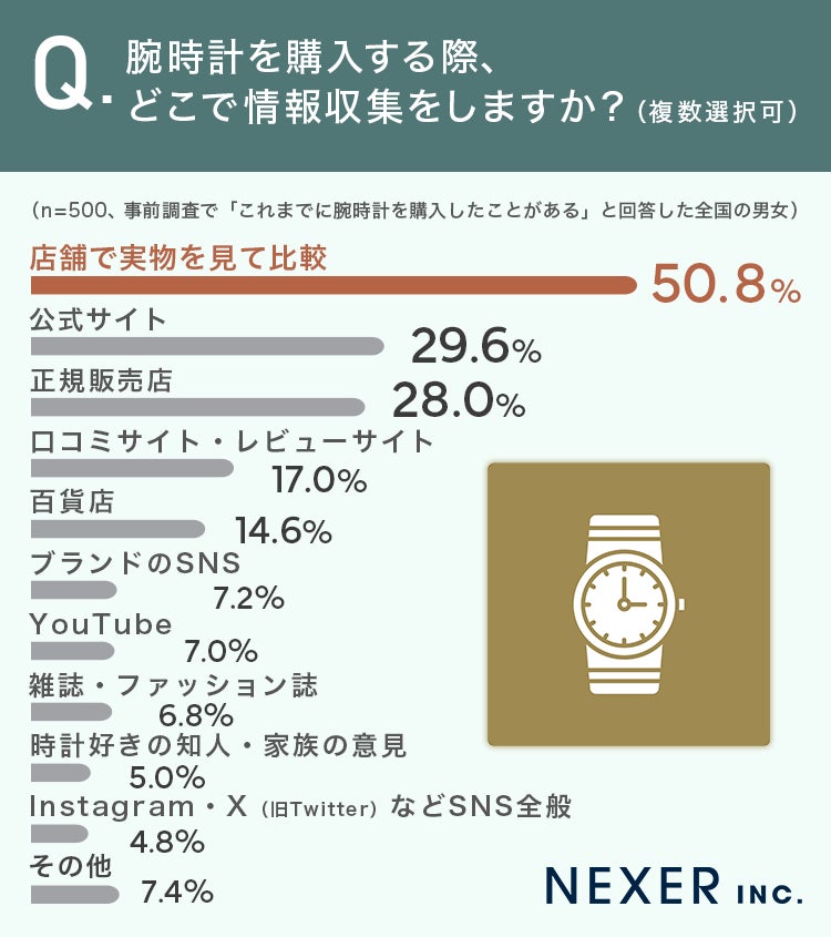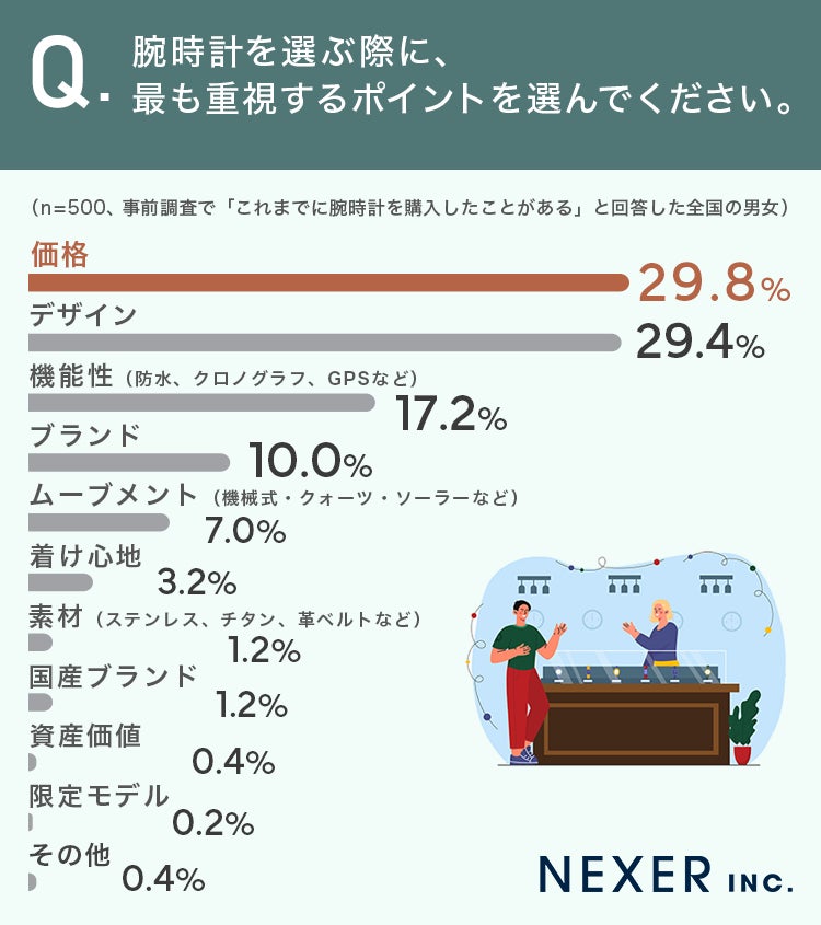 株式会社NEXER・腕時計の選び方・購入時の重視ポイントに関する調査