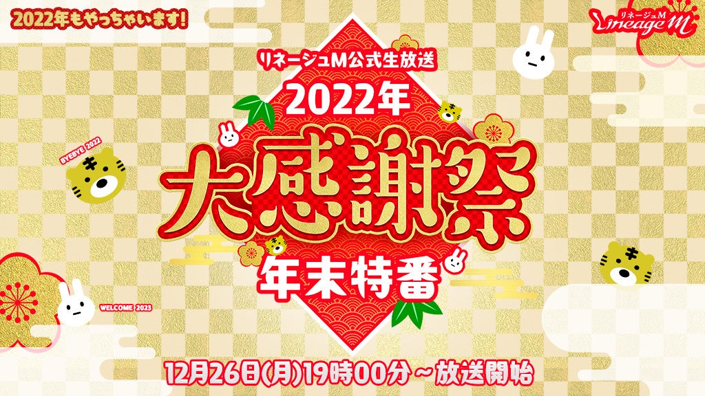 PCオンラインRPG「リネージュ」のモバイル版タイトル『Lineage M(以下、リネージュM)』のサービス、運営をしているエヌ・シー・ジャパン株式会社(東京都港区、代表取締役:金 澤憲(キム テクホン) 以下、エヌシージャパン)は、2022年12月26日(月)19時より、「2022年大感謝祭!年末特番」の実施をお知らせいたします。