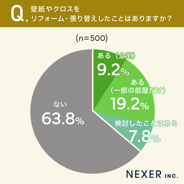 ということで今回はリノメイドと共同で、事前調査で「現在持ち家に住んでいる」と回答した全国の男女500名を対象に「壁紙・クロスのリフォーム」についてのアンケートをおこないました。