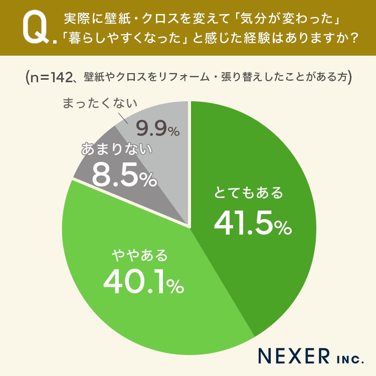 最後に、実際に壁紙やクロスを張り替えた経験がある方に対して「気分が変わった」「暮らしやすくなった」と感じた経験があるかを聞きました。