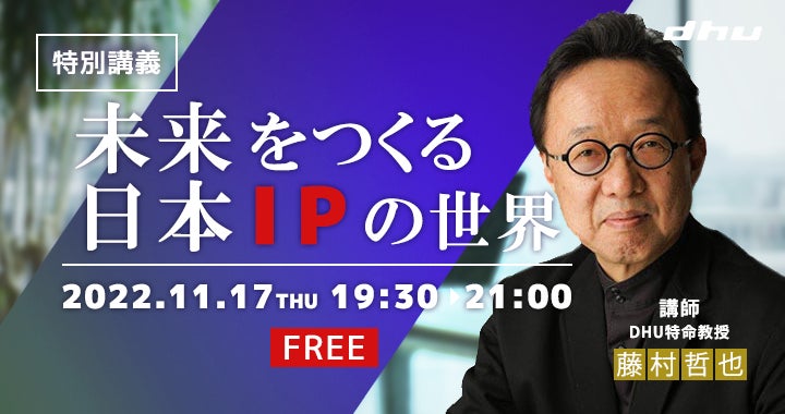 2022年11月17日に開催する特別講義では、日本のIP(IP=知的財産)をハリウッドでの映像化を通じて世界に紹介するプロデューサーである、本学の藤村 哲也特命教授が「未来をつくる日本IP映像化の世界」について語ります。講義の模様はオンラインでライブ配信し、一般公開いたします。