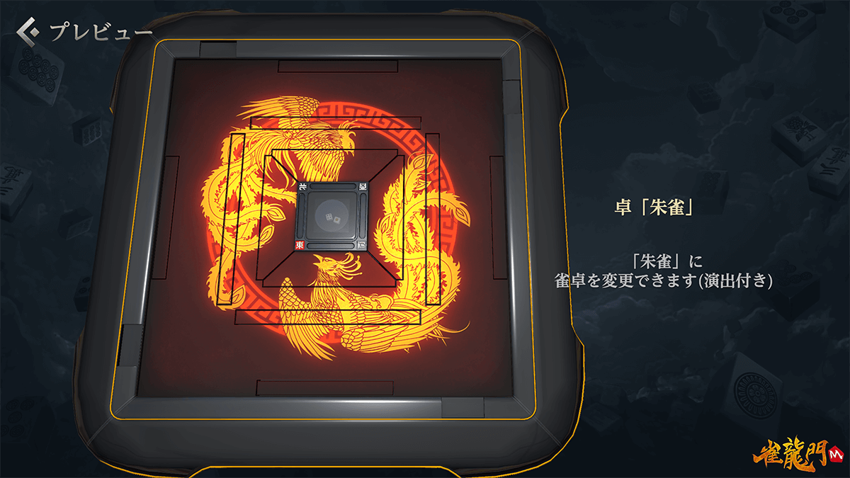 卓「朱雀」は、対局状況に応じて光る特別な卓です。
