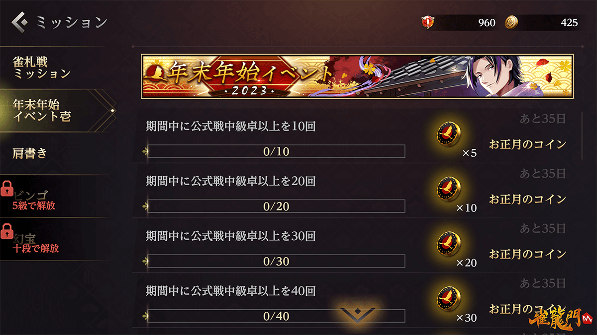 『雀龍門M』イベントに参加して限定アバターアイテムを手に入れよう!イベント「年末年始イベント2023」が本日より開催!
