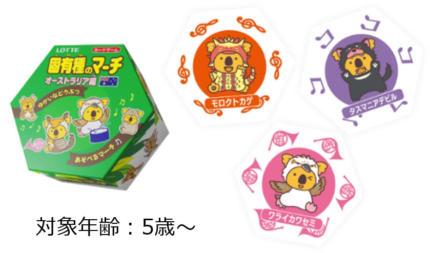 プロジェクトの第一弾は、「固有種のマーチ オーストラリア編」。1月29日(月)10時より期間限定で、このプロジェクトのために制作されたオリジナルデザインパッケージの商品をロッテオンラインショップ限定で受注販売いたします。また、本商品には遊びながらオーストラリアの固有種が学べるカードゲームが付いています。